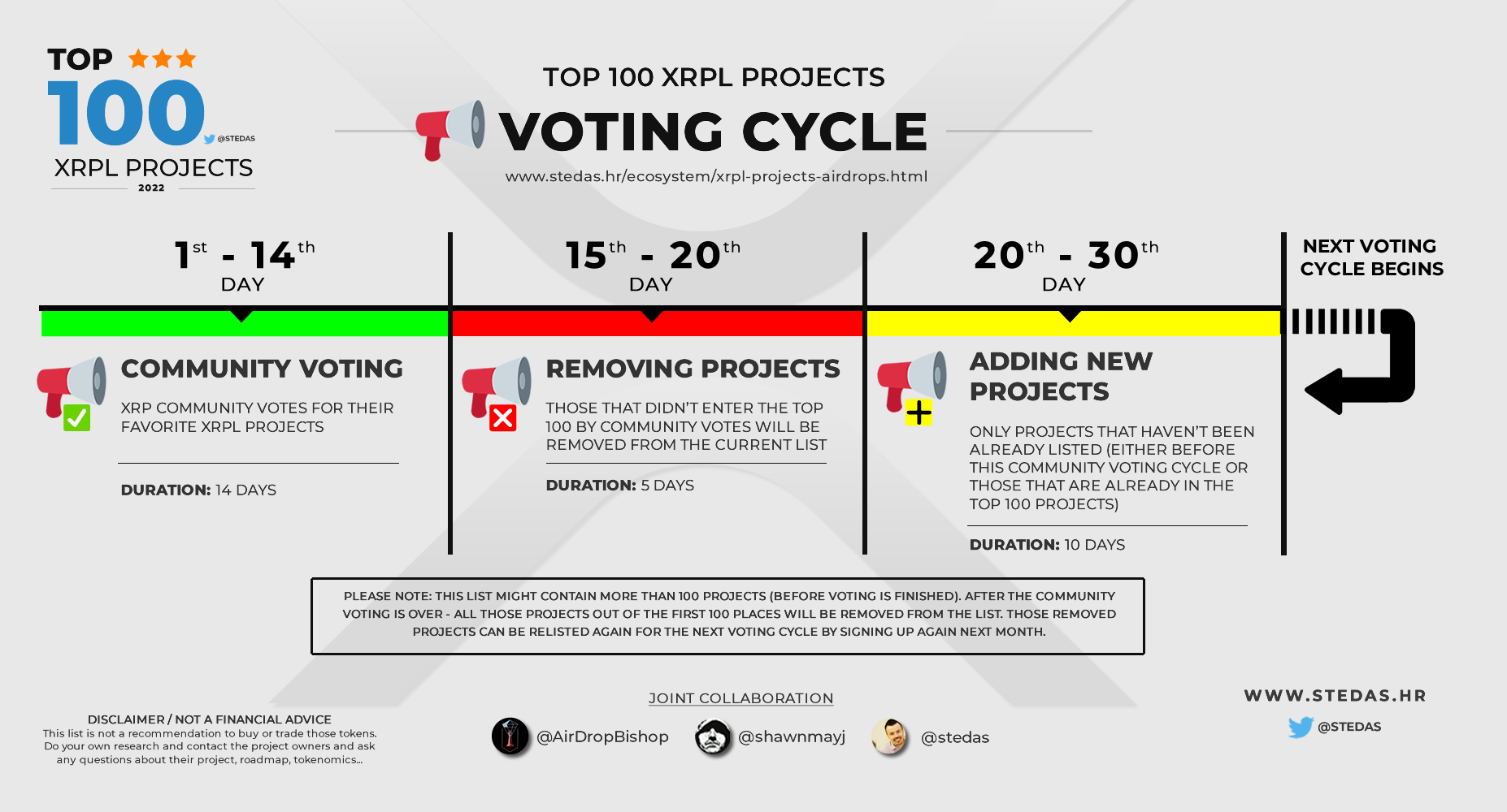 How does a community voting cycle for the "TOP 100 XRPL projects" looks like (30 days)? Click on the image to enlarge it.