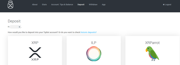 You will need first to login in into your XRP Tip Bot account using your Twitter username (no registration required). Go to this page