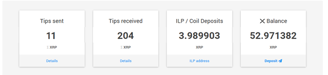 On your XRP Tip Bot account page you can check the following tips stats: