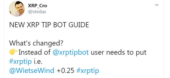 XRP Tip Bot allows Twitter (or Reddit) users to send XRP (Ripple) to each other through Tweets (or comments). If you are feeling generous and want to send a tip to your friends, followers or anybody with a Twitter account you can now you use this incredibly useful, simple and fun tool.