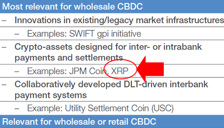 Crypto assets designed for inter or intrabank payments and settlements – Examples: JPM Coin, XRP