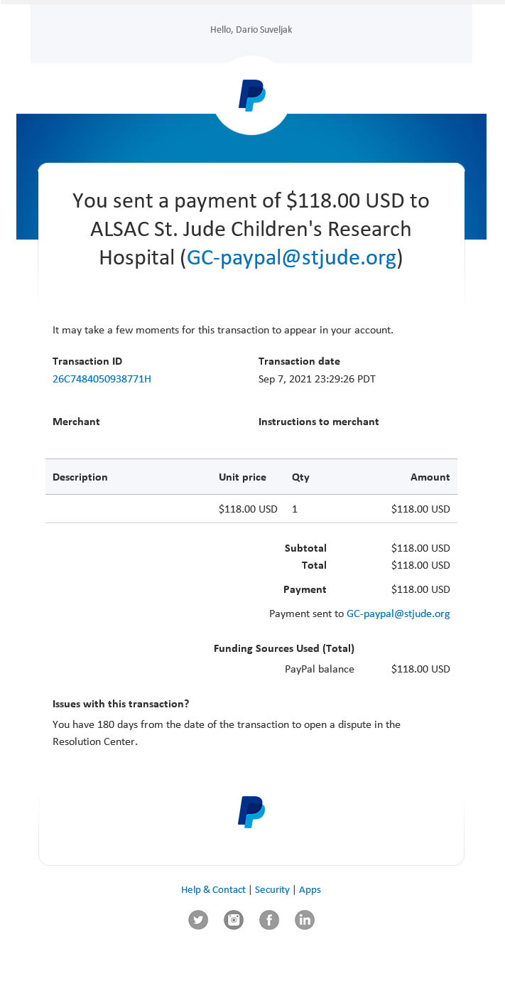 ➡️20% ($118 USD) was donated to the St Jude Children's Research Hospital Charity