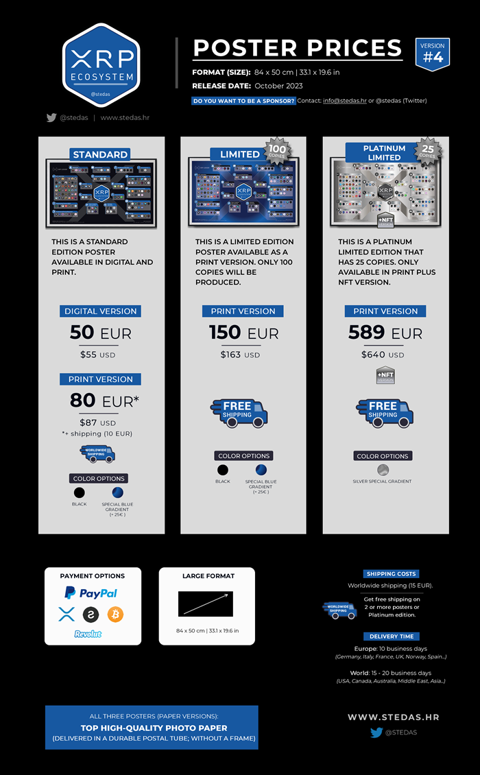 ๐ Support Innovation: By purchasing this poster you're supporting innovation in the blockchain space. Be a part of the movement and help us continue to create amazing XRP(L) posters like this. ๐ Reserve yours today! ๐ Release date: Oct 2023 | XRPL projects: 300+