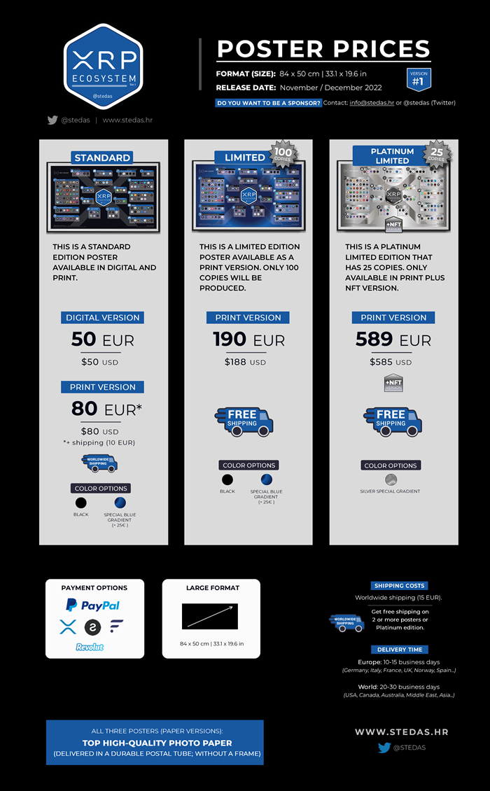 This POSTER shows diverse and vibrant XRPL Ecosystem including NFT Collectibles, Gaming & Metaverse, Marketplaces, DEXs & Launchpads, Wallets, Explorers AND many more...🎉 You're only a few steps away from a Platinum NFT Limited Edition (only 25 copies)! Order here